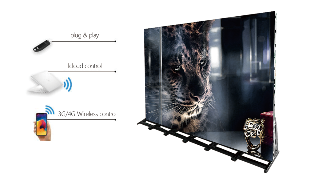 - Intelligent control: support cell phone APP remote update content, multi-screen linkage playback.