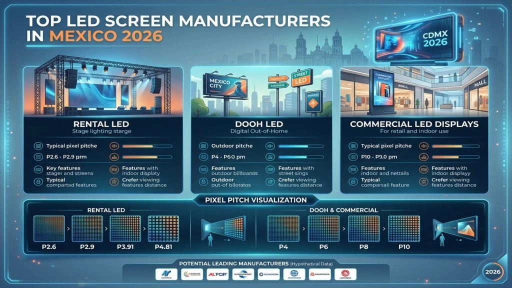 Arriba 9 Fabricantes de Pantallas LED en México (2026 Guía del comprador) | Escenario, Alquiler & LED comercial