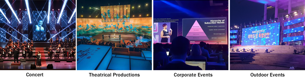 コンサートや音楽祭で, ステージスクリーンは音楽体験をより良くします. ライブパフォーマンスのダイナミックなキャンバスとしても機能します。, ミュージックビデオ, および同期した光の表示.